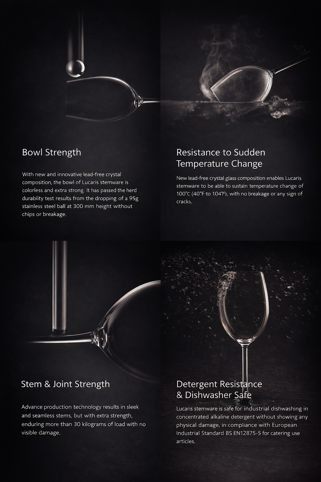 Titanium-Reinforced Strength: Engineered to resist chips, cracks, and scratches. This glass is significantly more durable than standard soda-lime glass or traditional lead crystal.