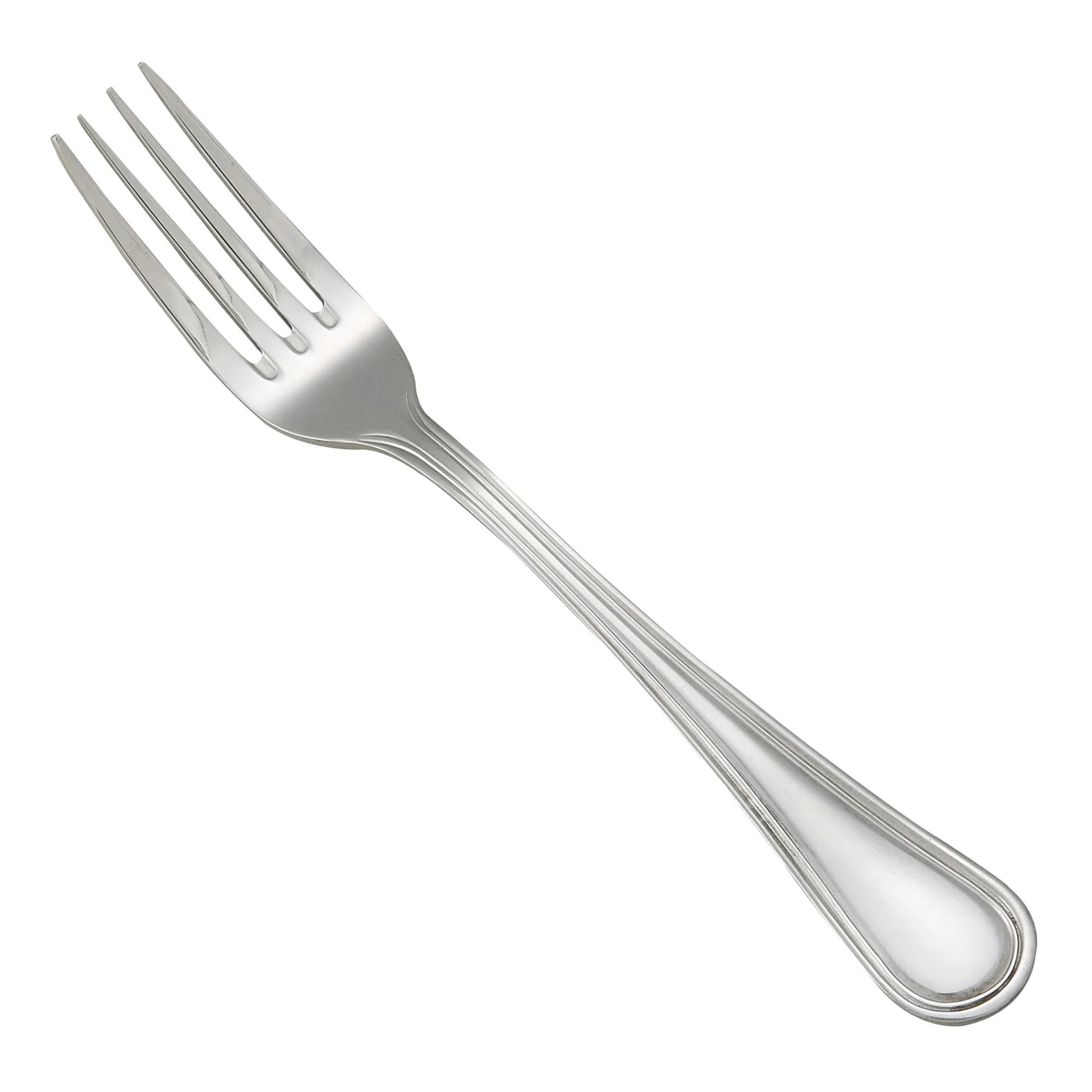 Create an elevated table setting with this commercial-grade salad fork, part of the Continental flatware collection by Winco. This specially designed salad fork features wide tines to provide additional leverage for cutting and spearing large vegetables and leafy greens. Featuring simple lines and elegant contours, the Continental flatware collection is versatile and ideal for use in restaurants, hotels and catered events. Forged from heavy-duty stainless steel, this heavyweight salad fork is designed to withstand daily use in a commercial foodservice environment making it an ideal choice for hotels, cafes and restaurants. Each piece of the Continental flatware collection is dishwasher safe for both residential and commercial dishwashers. The elegant mirror finish is designed to last and is resistant to pitting or dulling, even after repeated washes.